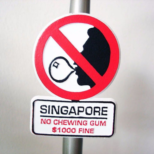 Khách du lịch sở hữu kẹo cao su có thể bị phạt S$500 hoặc bị bắt giữ. Kiểm soát kẹo cao su rất nghiêm ngặt ở đây. Bạn có thể sở hữu kẹo cao su vì lý do y tế, nhưng phải được chỉ định với đơn thuốc từ bác sĩ.
