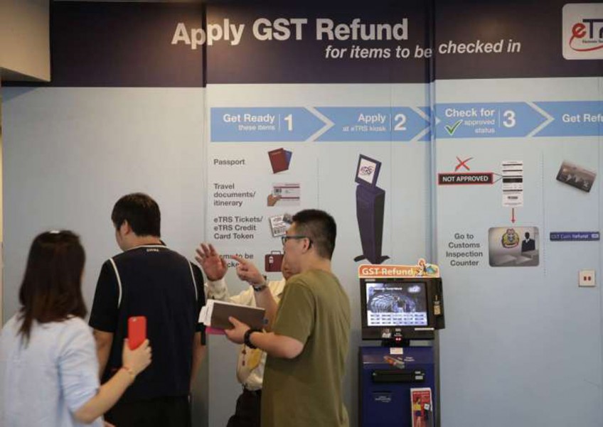 Bạn phải đến sớm ít nhất 2 giờ trước khi khởi hành để thực hiện tờ khai thuế ở Kios eTRS. Bạn tìm kiếm vị trí hoàn thuế GST và bạn có thể thực hiện khai thuế trên máy tự phục vụ của eTRS. Điền vào dữ liệu và làm theo hướng dẫn, sau đó biên lai sẽ được nêu rõ tờ khai thuế của bạn có chấp thuận hay không. Nếu được chấp thuận thì làm theo bước 3 dưới, nếu không bạn hãy liên hệ với nhân viên phụ trách tại đó và đưa biên lai của bạn để họ xem xét thủ công.